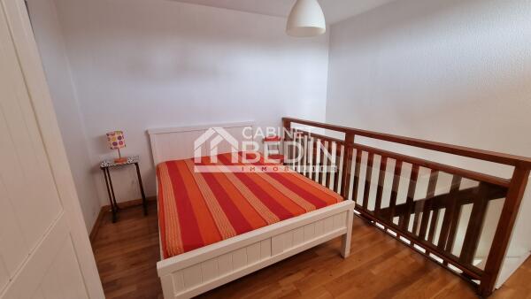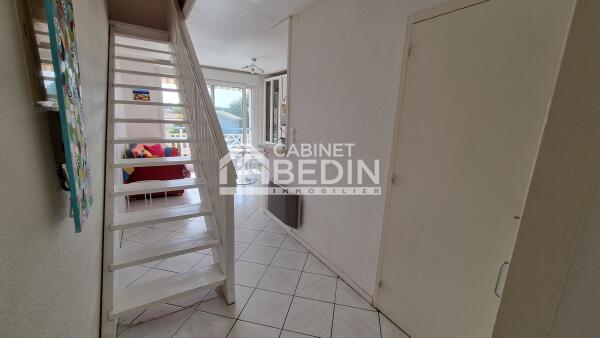 Emplacement de choix pour ce T2 duplex meublé, lumineux et en très bon état dans petite copropriété avec piscine côté bassin. Vue dégagée sans vis à vis. Belle pièce de vie avec cuisine équipée (lave vaisselle, réfrigérateur, congélateur, plaque, hotte, four) donnant sur baie vitrée et grand balcon. Entrée avec placards. Salle d'eau (possibilité lave linge). Véritable chambre en duplex (pas de rampant). Place de parking. A visiter sans tarder.