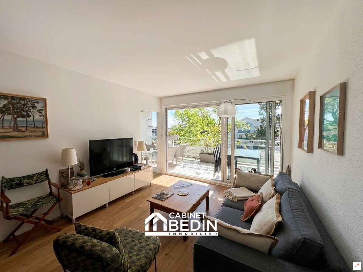Mandat "Partenaire" du Cabinet Bedin, Cette annonce immobilière correspond à des personnes en recherche appartement Arcachon. Ce bien immobilier propose une surface de 62,8 m². , d'une surface carrez de 47,6 m² dispose de 1 chambre. Dans le détail, cet Appartement comprend les pièces ou éléments suivants: debarras de 1.2 m² , chambre de 7.6 m² , entree de 3.3 m² , salle d'eau toilettes de 3.7 m² , séjour-cuisine us de 23.3 m² , terrasse couverte de 13.8 m²