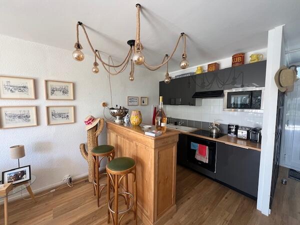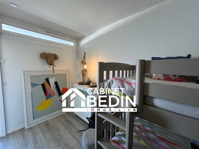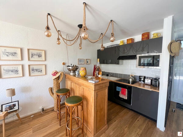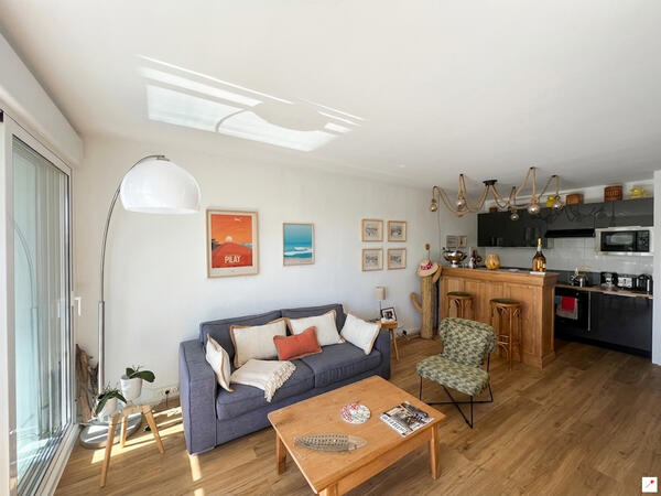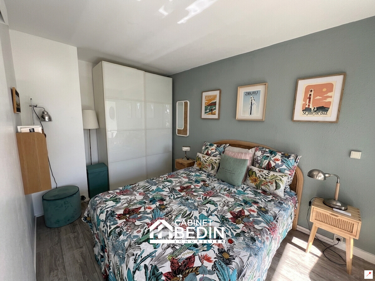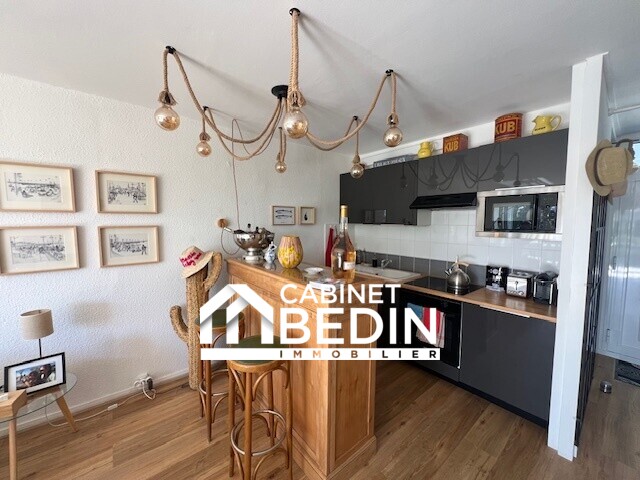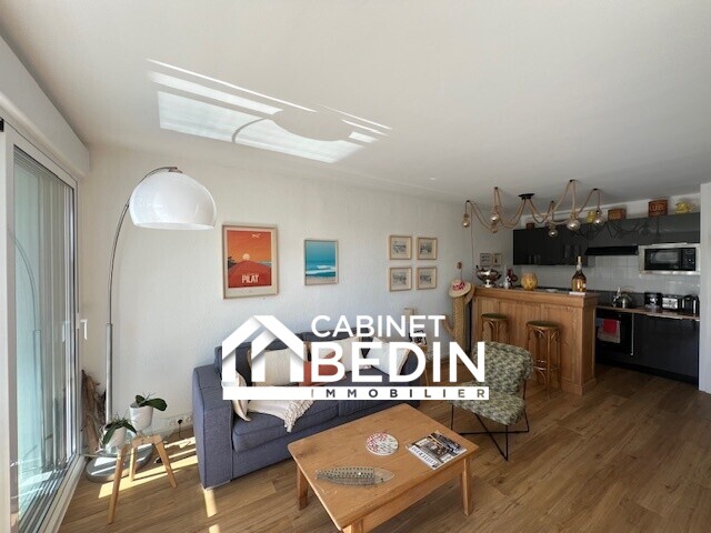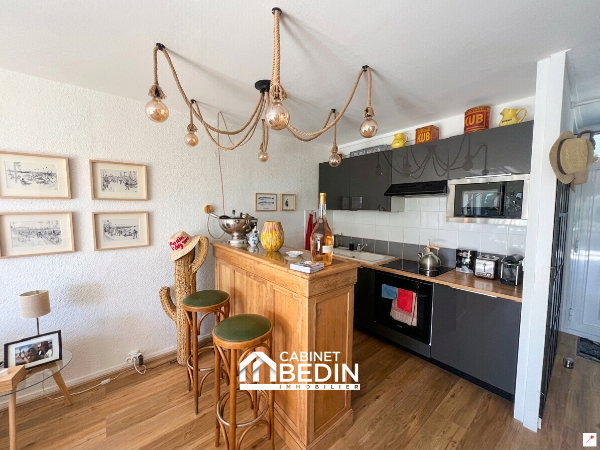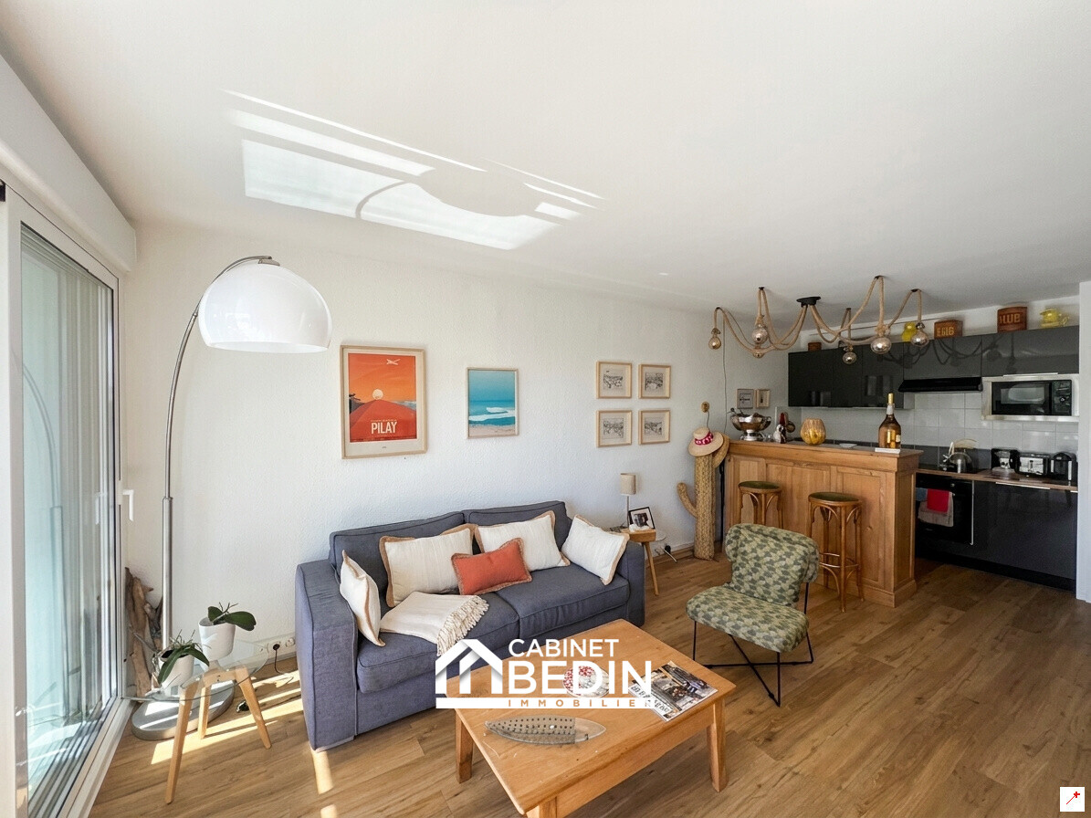 Appartement à vendre à Arcachon, dans le quartier prisé de l’Aiguillon : découvrez ce superbe T cabine entièrement rénové situé au sein de la résidence Arcachon Marine, idéal pour un pied-à-terre ou un investissement locatif de qualité sur le Bassin d’Arcachon. D’une surface de 47,60 m² loi Carrez (63 m² avec terrasse), cet appartement lumineux offre un cadre de vie recherché à proximité des commerces, du port et des plages. Vous profiterez d’un séjour spacieux avec cuisine ouverte moderne et entièrement équipée, prolongé par une grande terrasse exposée sud-est de plus de 13 m², parfaite pour les repas en extérieur et les moments de détente avec vue dégagée. L’espace nuit comprend une chambre principale avec accès terrasse, une seconde chambre cabine fonctionnelle, ainsi qu’une salle d’eau contemporaine avec douche à l’italienne. Ce bien dispose également d’un cellier et d’une place de parking privative, un vrai plus à Arcachon. Chauffage collectif au sol et eau froide inclus dans les charges. Appartement sans travaux, rénovation récente, excellent état général. Bien rare sur le secteur de l’Aiguillon, idéal pour un achat immobilier à Arcachon alliant confort, luminosité et rentabilité locative. Opportunité à saisir rapidement pour investir sur le Bassin d’Arcachon.