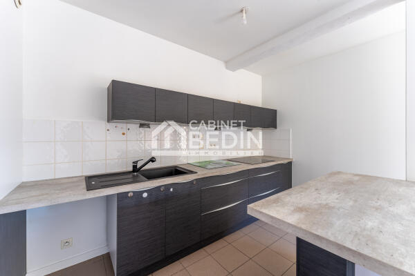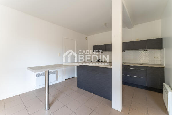 DANS LE CENTRE D'ARES, appartement de type 3 de plain pied avec jardinet CUISINE OUVERTE SUR UN BEAU SALON SÉJOUR, DEUX CHAMBRES, SALLE DE BAINS, PLACE DE PARKING. Location non meublée