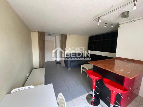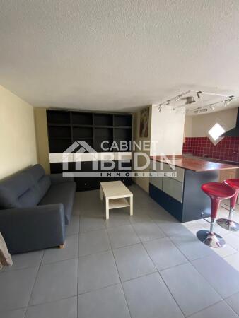 Appartement de type 1 meublé en très bon état, au 3ème étage d'un immeuble sécurisé avec une pièce de vie ouverte sur cuisine américaine intégralement équipée, une salle de bain avec WC, de nombreux rangements, une climatisation réversible, un balcon. Place de parking aérien
