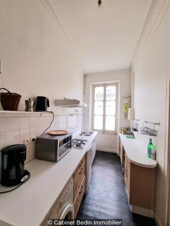 Rue Villedieu Grand t2 56m² meublé belle Terrasse sur l'arrière bien exposée Entrée, séjour (deux grandes fenetres), cheminée decorative, petit balcon Cuisine séparée équipée, chambre au calme acces terrasse vue dégagée sur la verdure. salle de bains baignoire angle + douche et wc séparés. Tram B Victoire a 500m 6 Min a pied.