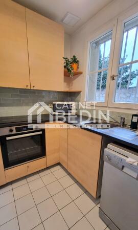 T2 Meublé situé dans l'agréable Quartier des Chartrons. Grand séjour qui donne sur l'arrière de l'immeuble, cuisine moderne équipée, chambre avec lit-tiroirs et placard, salle de bains (Machine à laver), wc séparés. Possibilité de Garage fermé au rdc de l'immeuble pour 100€ en supplément. Tram B et C a proximité (Chartrons/P.Doumer). Prise de rdv sur plato.immo