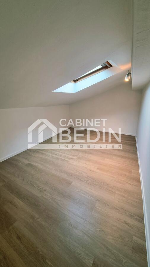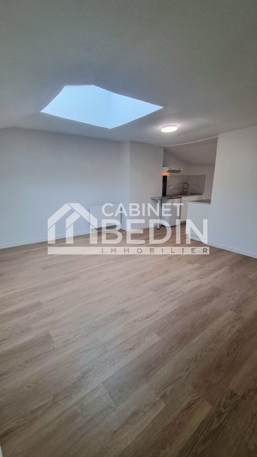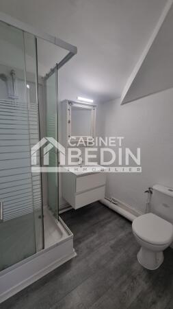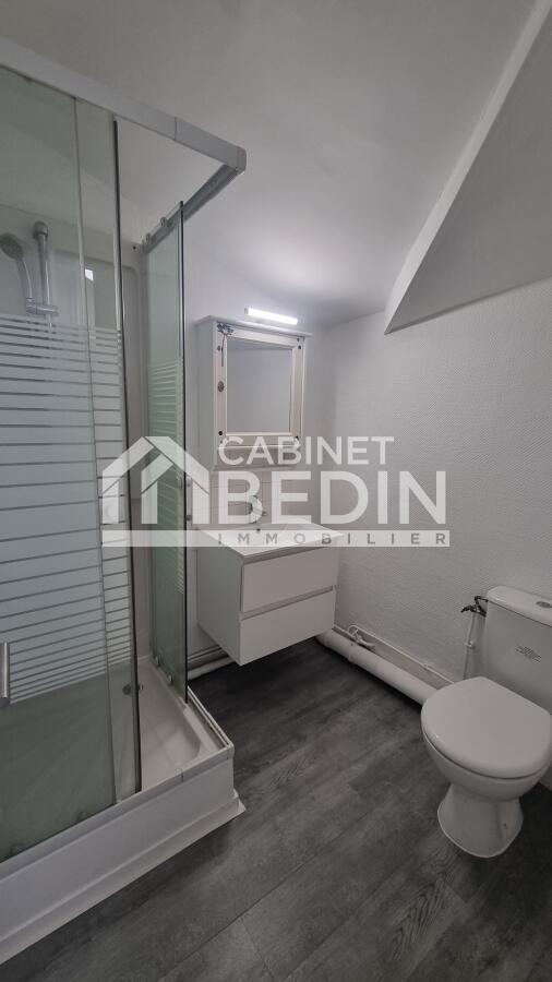 T2 Rue saint James Au 4ieme et. éclairé par des vélux et une fenetre cuisine Entrée séparée, grand séjour lumineux, Cuisine us équipée frigo, plaques, hotte. Chambre, salle d'eau avec wc. Commodités tres proches, Tram à proximité. Une visite virtuelle est disponible sur cabinet-bedin.com Visite : prise de rdv sur palto.immo