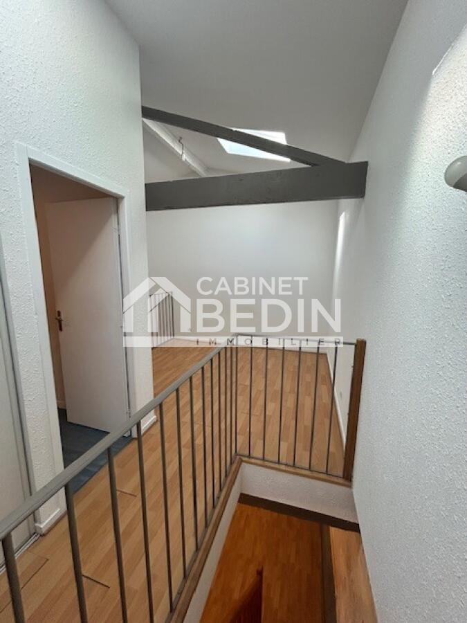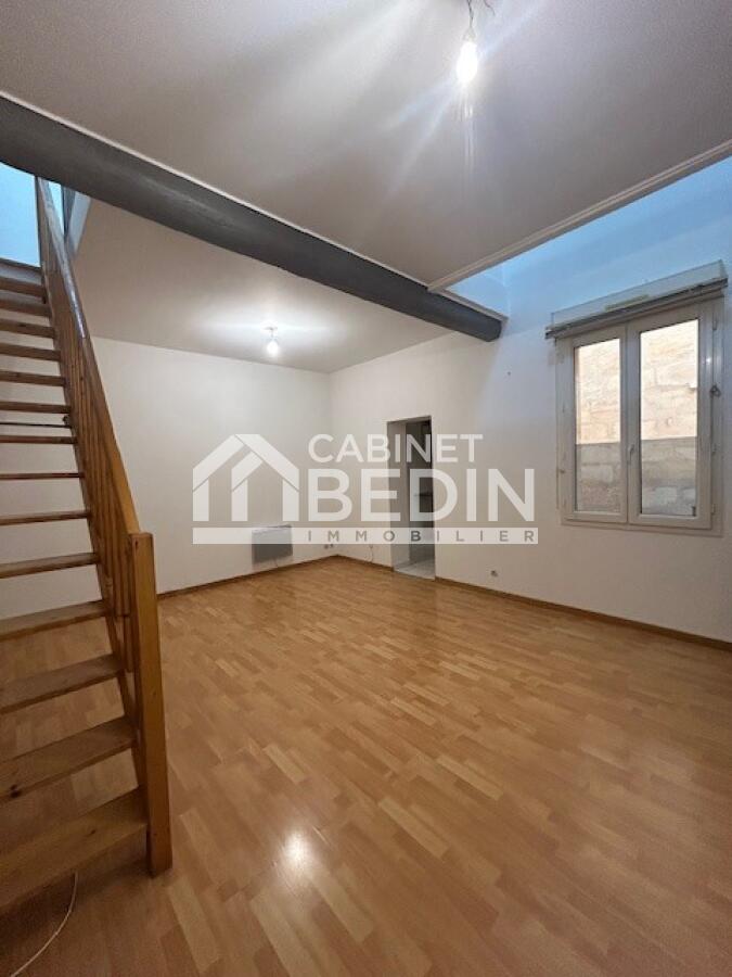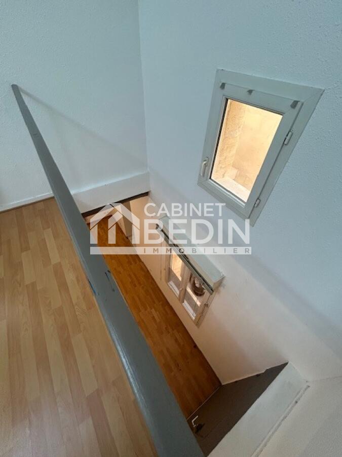 Appartement situé rue barreyre, au premier étage d'une petite coopropriété. Se compose d'une piéce de vie, une cuisine séparé avec placards (frigo/hotte /plaque) à l'étage une chmabre avec placard, 2 velux, une salle de bain avec wc. Local à vélo, visite samedi 21 mars , inscription pour les visites sur le site Plato ou par sms 06 22 88 72 14 merci d'expliquer votre situation Possibilité de louer en supplement une place de moto libre au 25 mars