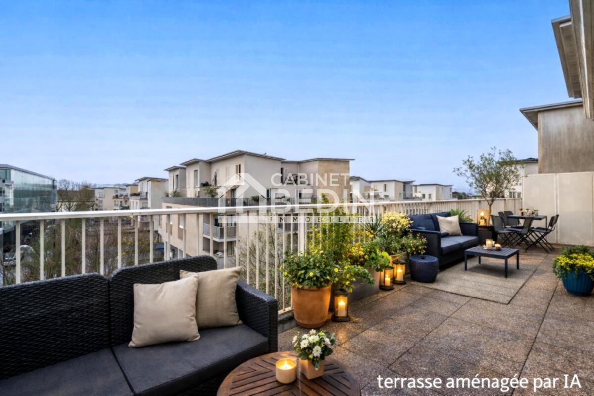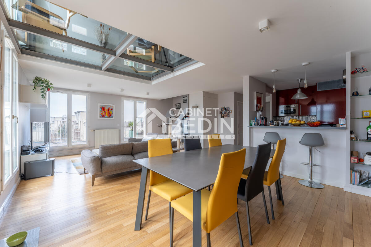 Appartement duplex 5 pièces d'environ 122 m², situé au dernier étage d’une résidence de standing. Lumineux séjour avec terrasse exposée sud-ouest, cuisine semi-ouverte équipée, 4 chambres, 2 salles d’eau. Environnement calme, proche quais et transports. Parking sécurisé.