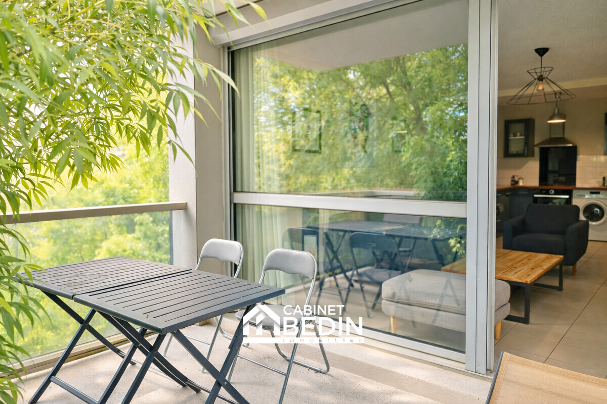 Parfaitement agencé, il se compose d’une pièce de vie lumineuse avec cuisine ouverte, prolongée par un agréable balcon d’environ 8 m². Véritable atout, cet espace extérieur, sans vis-à-vis et niché dans les arbres, offre un cadre paisible idéal pour vos moments de détente.