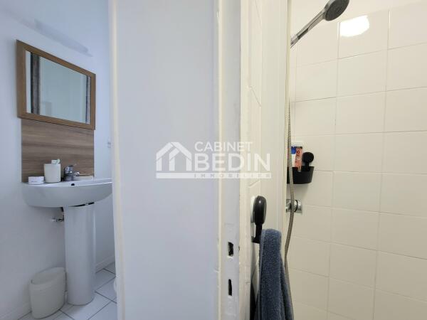 En exclusivité au Cabinet Bedin, Cette annonce immobilière correspond à des personnes en recherche appartement Bordeaux. Ce bien immobilier propose une surface de 18,5 m². , d'une surface carrez de 18,5 m². Dans le détail, cet Appartement comprend les pièces ou éléments suivants: couloir de 1.5 m² , douche de 1.7 m² , séjour-cuisine us de 15.0 m² , toilettes de 1.8 m²