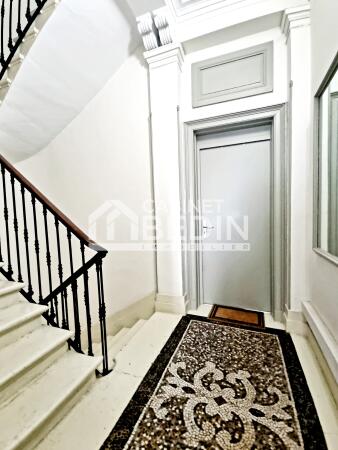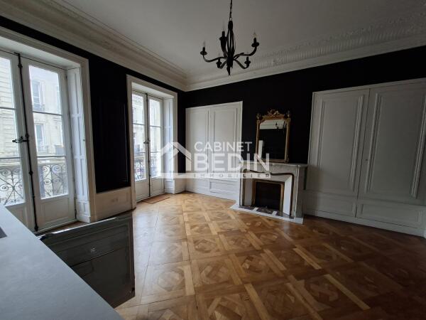 Situé à l'étage noble, il offre de belles hauteurs sous plafonds, un parquet Versailles en excellent état ainsi qu'une cheminée en marbre blanc.
