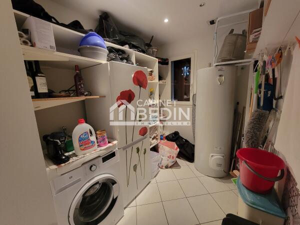 Il comprend également deux chambres confortables, une salle d’eau fonctionnelle et deux toilettes séparées. Un dégagement astucieusement aménagé et un cellier/buanderie ajoutent encore à la praticité de l’espace.