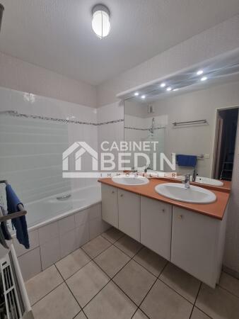Appartement T3, 3éme et dernier étage d'une résidence des année 2000, se com pose d'une entrée, une cuisine séparée avec palacrds, une buanderie,piece de vie lumineuse donnant sur une terasse, 2 chambres avec placards, une salle de bain double vasques), wc séparé. Pour completer le tout un garage et une place de parking en extérieur, Tram D (marie du Bouscat) à 500 métres. Visite mercredi 10 Décembre ou samedi 13 decembre, inscription sur le site Plato ou par mail merci de vous présenter.