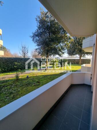 LE BOUSCAT LA CHENERAIE - Idéalement situé à 5 min à pieds de l'arret du tram D "mairie du bouscat", Appartement T2 au rez de chaussée d'une résidence comprenant : une entrée avec placard, un séjour salon avec cuisine ouverte aménagée et équipée (frigo,plaques, hotte, meubles hauts, meubles bas), une chambre avec placard, une salle d'eau et wc séparé. Un balcon donnant sur la pièce de vie et une place de parking complète le tout. Résidence calme et très bien entretenue. Libre de suite