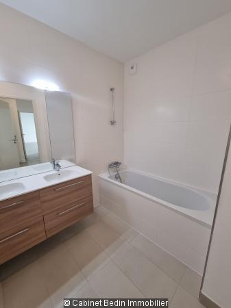 T3 avec balcon sis dans la résidence neuve "Collection", au pied du tram D Arrêt "Mairie du Bouscat". Normes BBC,chauffage/eau collectif, Inclus loyer. Entrée avec placard, Séjour lumineux avec acces Balcon 11m², cuisine us équipée, deux chambres avec placards acces balcon, salle de bains, wc séparés. Branchements LV et MAL présents. Place de parking privative sécurisée, cellier. Une visite virtuelle de ce bien est disponible sur cabinet-bedin.com