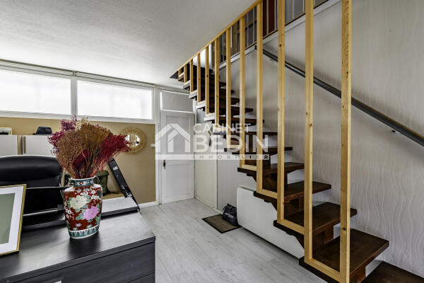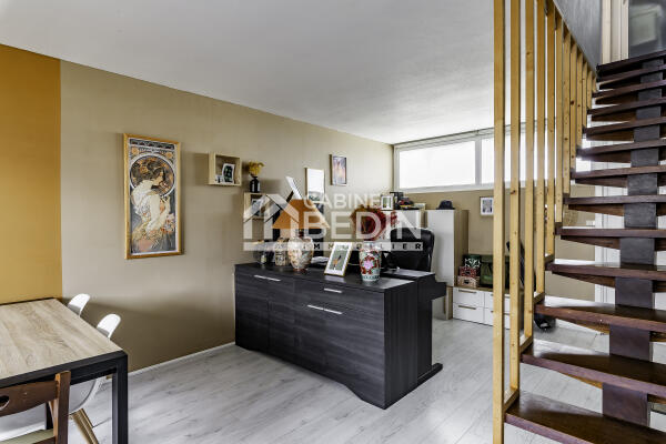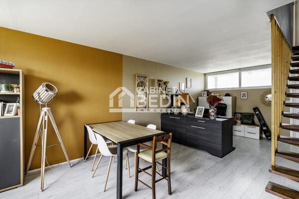 L'originalité de ce duplex est qu'il se vit comme une maison familiale, dans un bâtiment de 4 étages composé uniquement de T4 en duplex, celui qui nous concerne comprend une grande pièce de vie avec cuisine au 3 ème étage et l'espace nuit est au 4ème étage avec 3 chambres, salle d'eau, WC et buanderie.