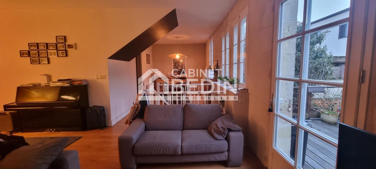Commerces et écoles sont à proximité ainsi que la ligne de tram D. Cet appartement se vit comme une maison, dans une jolie rue de la barrière du Médoc. Avec entrée privative, aucune nuisance, bien rare et atypique.