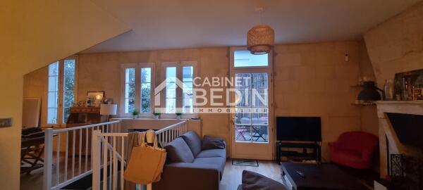 Dans une rue calme de la barrière du médoc, cet appartement situé au rez-de-chaussée d'une copropriété de 2 lots, vous séduira par son charme, alliant la pierre et le bois, l'appartement est traversant, une belle terrasse en bois sans vis à vis offre une vie à l'extérieur dans un environnement calme et végétalisé. Appartement en duplex, avec en RDC, entrée, WC, grande pièce de vie avec cuisine US, ouverte sur une belle terrasse en bois, une chambre et une salle de bain. En rez-de-jardin, 2 chambres avec accès direct sur la 2ème terrasse, une salle d'eau avec WC, un dressing. Une cave de 21.85 M2 avec un point d'eau et buanderie, complète ce bien. L'appartement a sa propre entrée, il n'y a pas de parties communes dans la résidence. Le syndic est bénévole, les charges sont faibles.