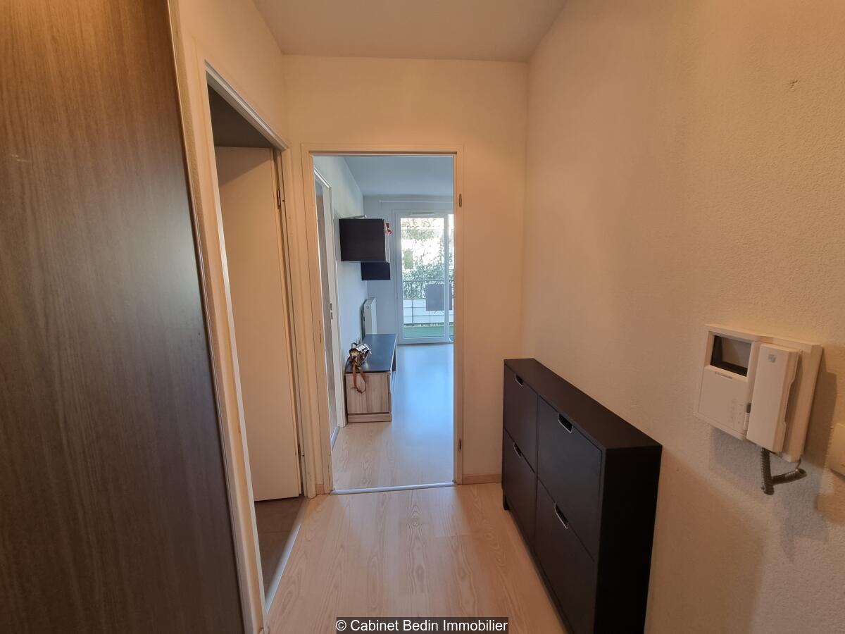LE HAILLAN Appartement T2 meublé eu Haillan dans résidence récente. Au premier étage, il comprend : 1 entrée, 1 salon séjour avec cuisine ouverte aménagée et équipée, 1 chambre avec placard et une salle d'eau avec wc. 1 place de parking privative complète le tout.