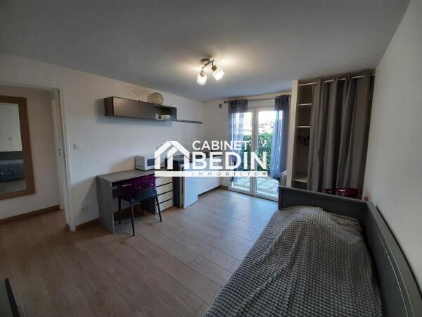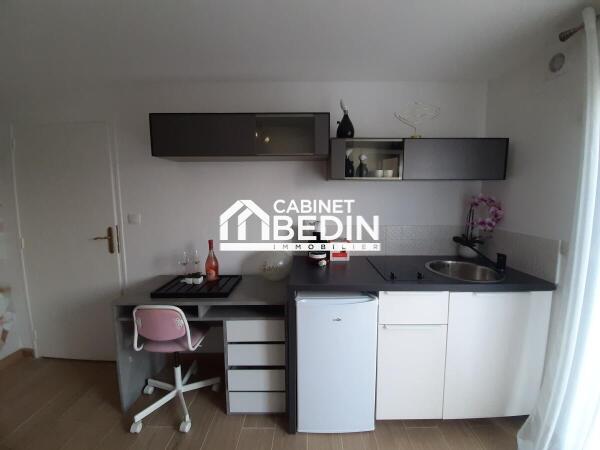 Bel appartement t1bis meublé avec une terrasse au pied du tram A à MERIGNAC. TOUTES CHARGES COMPRISES EAU CHAUDE+FROIDE+ELECTRICITE+CHAUFFAGE+INTERNET Il se compose d'une charmante pièce à vivre avec un lit double et un placard de rangement,une cuisine équipée et aménagée ouverte sur la terrasse, un dégagement, une grande douche à l'italienne avec une double vasque, un lave linge et un Wc. Stationnement libre dans la rue en face de l'appartement. Pour les visites merci de contacter Mélissa GOSSELIN au 06.49.25.73.96