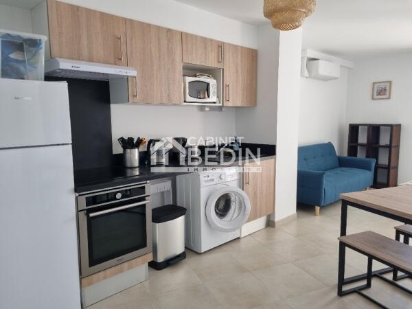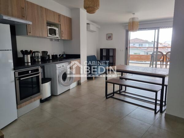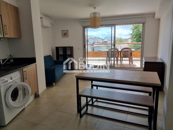 2 Pièces au 1er étage en Résidence avec parking privé. Une cuisine aménagée/équipée, séjour donnant sur terrasse expo ouest une chambre avec dressing et balcon, salle d'eau et wc. Appartement entièrement meublé et équipée.