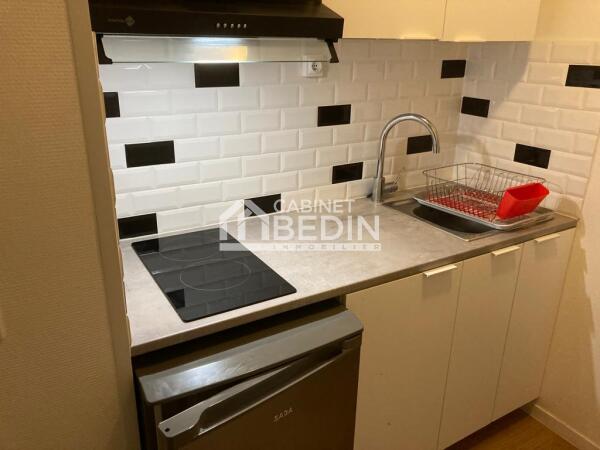 Beau studio meublé au 1er étage comprenant: pièce principale, espace cuisine aménagée et équipée, salle de douche avec wc. Emplacement de stationnement privatif.