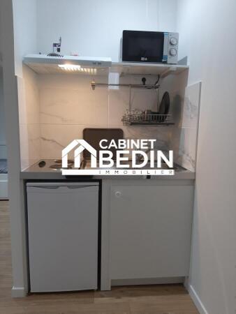 Appartement nouvelle construction meublé dans une petite résidence calme, proche des grandes écoles, universités, des commerces et transport, il se compose d'une entrée, une pièce à vivre, une kitchinette équipée et aménagé, une salle d'eau disposant d'une cabine de douche, un meuble de rangement avec une vasque et miroir, un Wc.le stationnement est libre devant la réside TOUTE LES CHARGES SONT COMPRISES DANS LE LOYER( eau+ electricité+ chaffage et internet. pour les visite merci de contacter Mélissa GOSSELIN AU 06.49.25.73.96