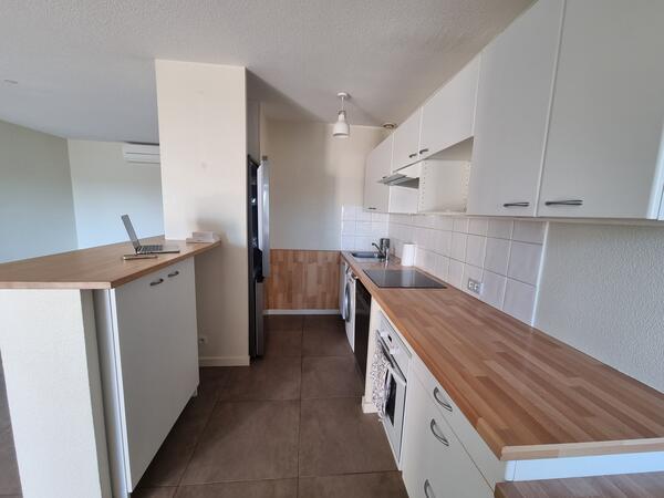 Il est équipée d'une climatisation réversible et d'une cuisine bénéficiant de tous les équipements : Frigo, lave-vaisselle, lave-linge et four. Idéal primo accédants.
