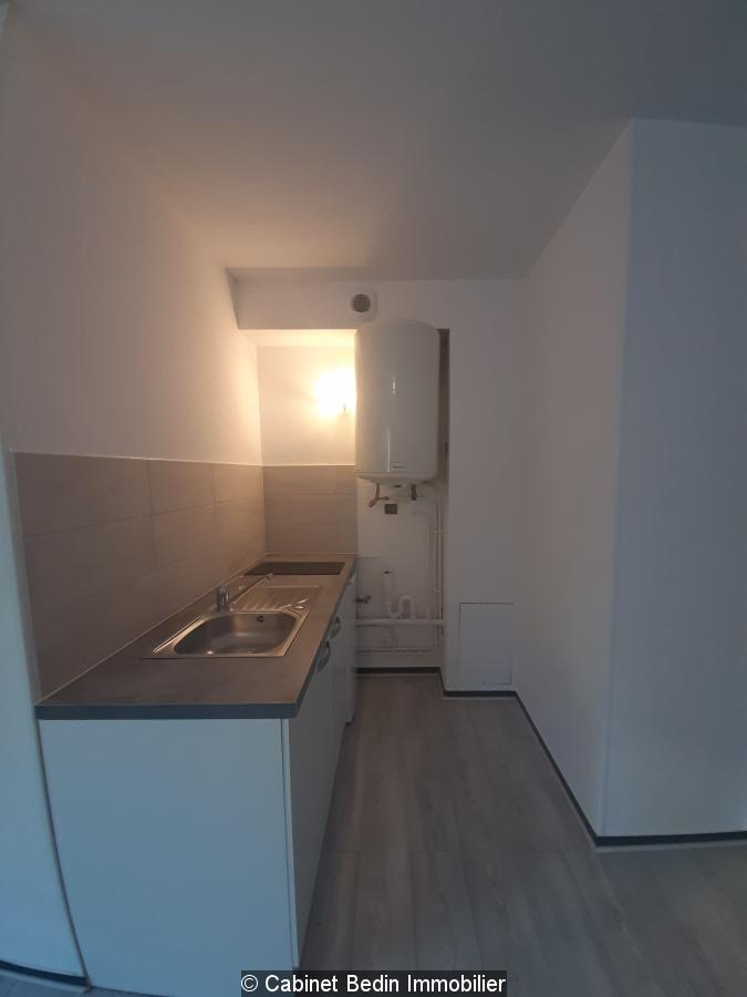 A 2 pas du Centre, studio refait à neuf. Entrée, pièce de vie, salle de bains. Place de parking.