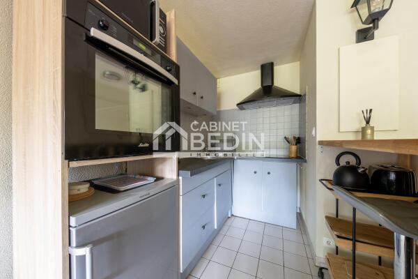 Le cabinet Bedin vous présente un T2 meublé situé dans un secteur calme et sécurisé. Le bien se compose d'une entrée, d'un lumineux séjour, d'une chambre, d'une cuisine équipée et aménagée, d'une salle de bain avec WC. Une place de parking complète le bien.
