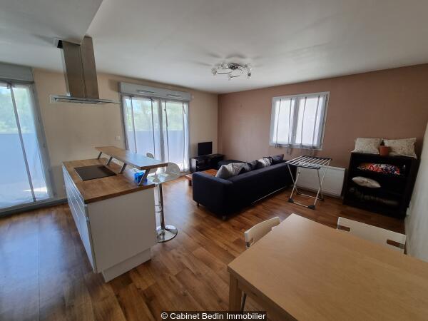 Appartement T3 entièrement meublé, dans une résidence sécurisée. Le bien comporte une entrée avec placards, une cuisine équipée ouverte sur le séjour, 2 chambres lumineuses, une salle de bains, ainsi qu'un balcon donnant sur les espaces verts. Avec place de parking