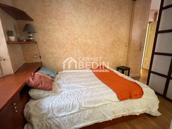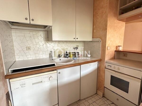 Appartement T2 dans joli immeuble ancien en brique, meublé, cuisine entièrement équipée, un séjour, une chambre, une salle d'eau. Belle vue sur terrasse commune. Possibilité de louer un parking en sus pour petite voiture.