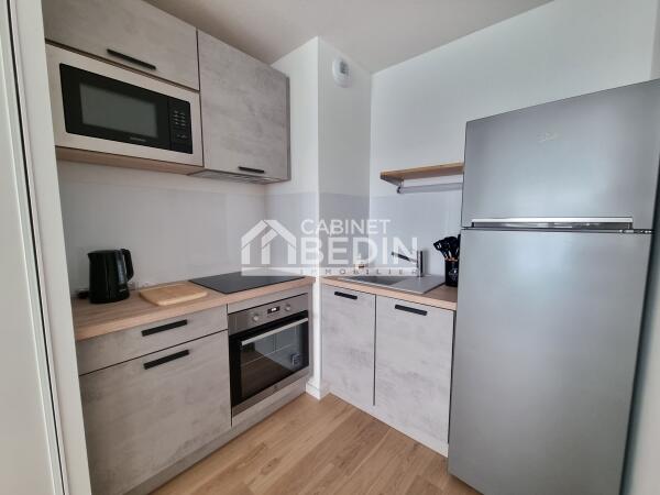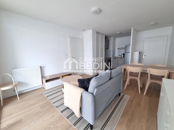 Appartement T2 neuf et meublé, composé d'un séjour avec cuisine ouverte donnant sur un balcon, une chambre, une salle d'eau avec wc. Place de parking en sous-sol.