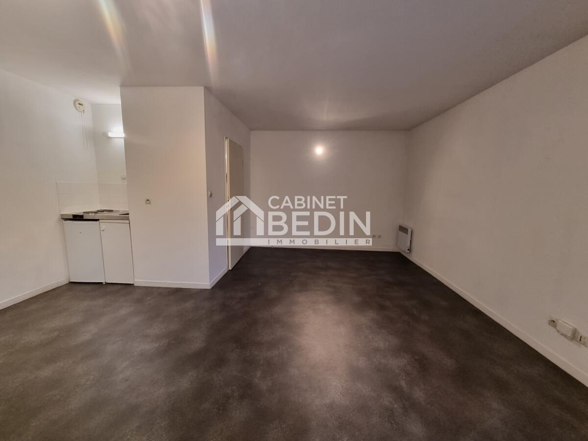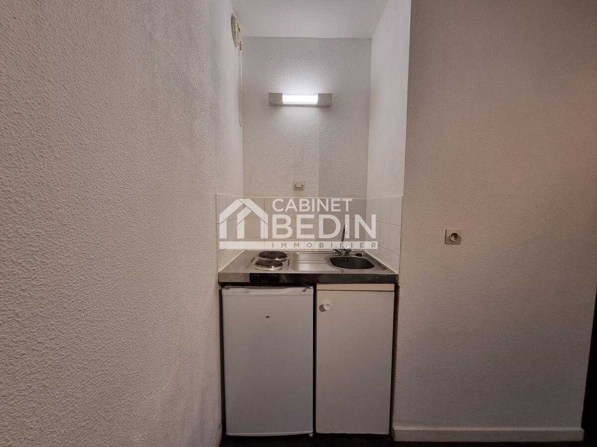 Appartement T1 en rez-de-chaussé au calme car retirée de l'axe principal; proche de la halle des machines à Montaudran. Il est composé d'une pièce de vie avec kitchenette, une salle d'eau avec wc. Possibilité de se garer dans la résidence mais pas de place attitrée.
