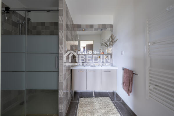 Dans une copropriété récente de standing, le Cabinet Bedin Immobilier vous présente ce bel appartement familial T4 en rez-de-jardin. Il comprend une entrée, un séjour lumineux avec salle à manger et cuisine équipée. L'espace nuit offre une suite parentale avec salle de bains privative, ainsi que deux chambres supplémentaires et une salle de bains. Vous bénéficierez également d'un double garage sécurisé en sous-sol. Le jardin privatif, sans vis-à-vis, est entretenu par la copropriété. À proximité de la Linéo 1, avec un accès facile au périphérique, commerces et commodités à proximité.
