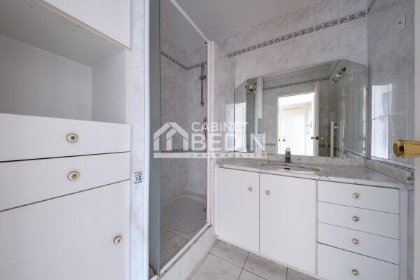L’espace nuit se compose de deux chambres, d’une salle d’eau et de rangements. Initialement configuré en T4, cet appartement offre la possibilité de recréer facilement une troisième chambre, selon vos besoins (bureau, chambre d’enfant, télétravail…).