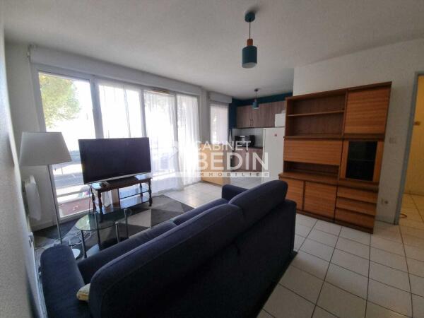 Appartement type 2, meublé dans résidence calme et sécurisée Composé d'une entrée, une vaste séjour avec un balcon, d'une cuisine équipée, d'une salle de bains et d'un WC. Possibilité d'accéder à une piscine commune