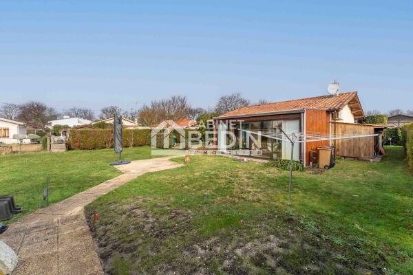 Au calme, à 20 minutes à pied du bassin, maison de plain pied bien entretenue bénéficiant d'une belle parcelle de plus de 760 m² piscinable. Vous trouverez une cuisine équipée récente, salon séjour avec poêle à granules, véranda de 21 m² non chauffée, trois chambres, deux salle d'eau. Chalet en bois de 18 m² avec établi et fenêtres. Puits foré. Portail automatique. Extension possible. Contactez nous pour une visite.
