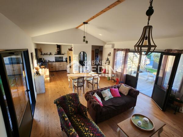 Située à Andernos, cette maison récente de 212 m², construite en 2021, offre un potentiel exceptionnel dans un quartier calme et proche du centre-ville. Elle dispose d’un espace de vie lumineux avec un plafond cathédrale, une cuisine ouverte, une suite parentale avec dressing, ainsi qu’un studio indépendant à l’étage, idéal pour accueillir des invités ou générer des revenus locatifs. Un cabinet médical mitoyen peut également être intégré ou transformé selon vos besoins. La terrasse plein sud est parfaite pour profiter du climat du bassin, avec la possibilité d’y installer un jacuzzi ou une petite piscine. C’est une belle opportunité pour un investissement flexible et rentable.