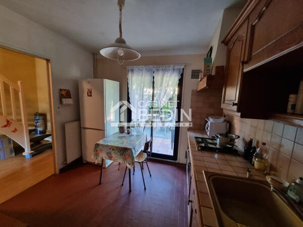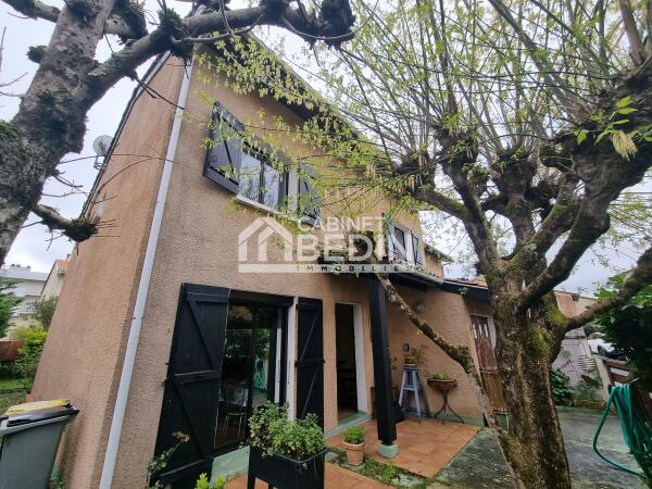 Maison mitoyenne d'environ 103 m2 avec 4 chambres, garage, balcon et jardin arboré d'environ 135 m2, idéale pour accueillir une famille avec enfants souhaitant accéder à la propriété dans l'emblématique quartier de l'Aiguillon. Entrée, séjour/salon et cuisine équipée de plain pied et 4 chambres à l'étage dont une avec sa salle d'eau privative, une salle de bains et un balcon. Une place de stationnement privative numérotée devant la propriété vient compléter les prestations de ce bien à visiter sans tarder.