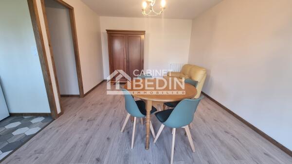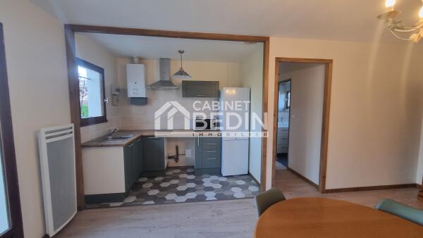 Maison d'habitation louée meublée composée d'un séjour avec cuisine ouverte et équipée, d'un dégagement, d'une salle d'eau avec wc et de 2 chambres. Un jardin avec un cabanon, une térrasse couverte et une véranda complètent le tout. Libre de suite.