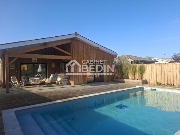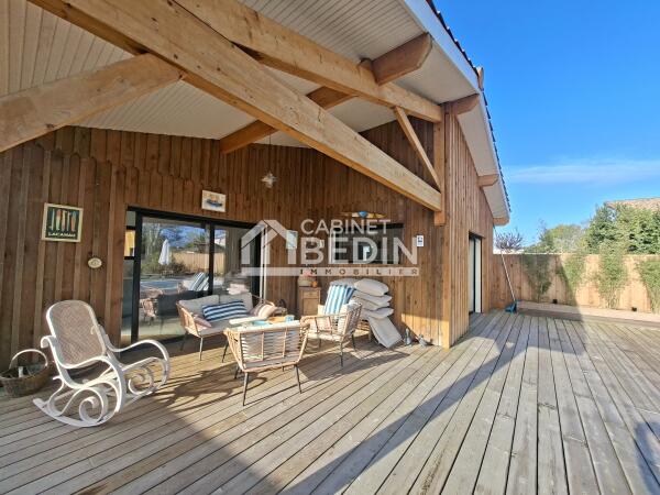 Mandat "Partenaire" du Cabinet Bedin, Cette annonce immobilière correspond à des personnes en recherche maison Ares. Ce bien immobilier propose une surface de 93 m². Cette maison construite sur un terrain de 510 m² dispose de 3 chambres. Dans le détail, cette Maison comprend les pièces ou éléments suivants: debarras de m² , chambre de 7.3 m² , chambre de 8.0 m² , chambre de 16.7 m² , couloir de 6.2 m² , local piscine de m² , douche de 2.6 m² , salle de bain de 6.5 m² , séjour-cuisine us de 44.0 m² , terrasse couverte de 14.0 m² , toilettes de 1.4 m²