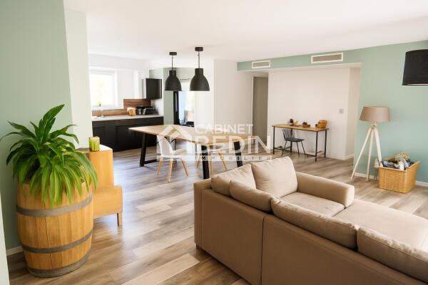 Mandat "Partenaire" du Cabinet Bedin, Cette annonce immobilière correspond à des personnes en recherche maison Audenge. Ce bien immobilier propose une surface de 100,6 m². Cette maison construite sur un terrain de 743 m² dispose de 3 chambres. Dans le détail, cette Maison comprend les pièces ou éléments suivants: chalet bois de 4.5 m² , chambre de 10.0 m² , chambre de 10.0 m² , chambre de 15.7 m² , cuisine équipée de 8.1 m² , couloir de 4.0 m² , entree de 4.1 m² , garage de 12.4 m² , douche de m² , salon sejour de 40.2 m² , terrasse de 40.0 m² , toilettes de 1.6 m²