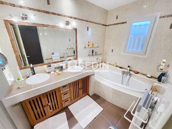 Cette annonce immobilière correspond à des personnes en recherche maison Audenge. Ce bien immobilier propose une surface de 156 m². Cette maison construite sur un terrain de 900 m² dispose de 3 chambres. Dans le détail, cette Maison comprend les pièces ou éléments suivants: coin travail de 8.5 m² , abri jardin de 2.0 m² , abri jardin de 12.0 m² , debarras de 5.8 m² , chambre de 9.5 m² , chambre de 15.2 m² , chambre de 10.1 m² , dégagement de 6.4 m² , cuisine de 11.7 m² , entree de 5.6 m² , garage de 13.5 m² , porche de 2.5 m² , douche de 2.8 m² , salle de bain de 5.1 m² , salon sejour de 40.8 m² , terrasse de 13.0 m² , veranda de 20.0 m² , toilettes de 1.9 m²