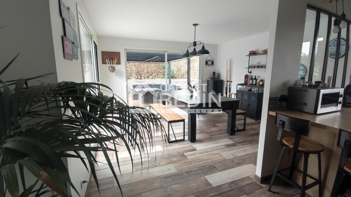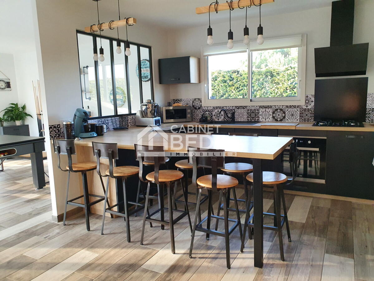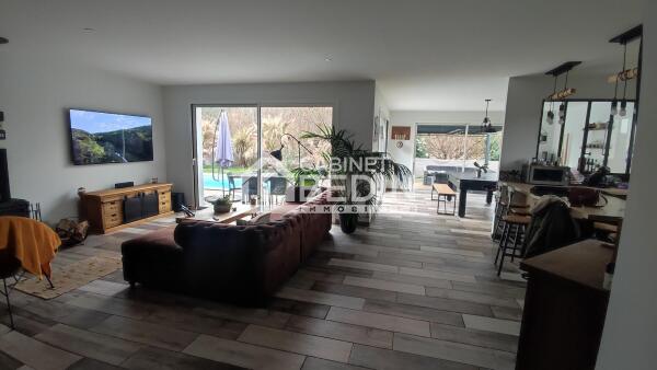 Dès l’entrée, vous découvrirez une vaste pièce de vie baignée de lumière grâce à ses larges ouvertures, sublimée par une cuisine ouverte entièrement équipée et fonctionnelle, complétée par un cellier attenant.
