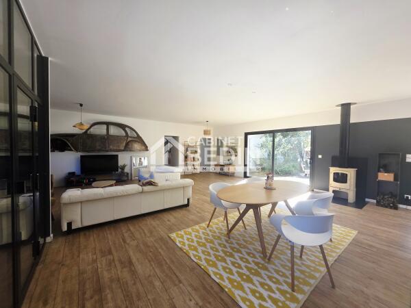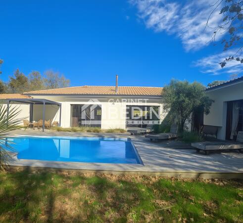 Maison quasi neuve de 2021 de 210 m² située à 20 min du lac de Sanguinet et 35 min de Bordeaux et du Bassin d’Arcachon. Implantée sur un terrain arboré de 10 000 m² avec piscine, elle offre un cadre paisible et verdoyant. À proximité immédiate des écoles et commerces, idéale pour une vie de famille confortable. Grande pièce de vie de plus de 85 m² avec salon, salle à manger et cuisine équipée. 5 chambres dont une suite parentale, 2 salles d’eau et 3 WC. Climatisation dans les chambres et chauffage au sol dans la pièce principale. Fonctionnelle avec cellier, buanderie et cave à vin. Une maison spacieuse, moderne et prête à accueillir vos projets de vie.