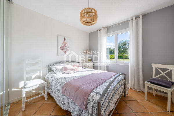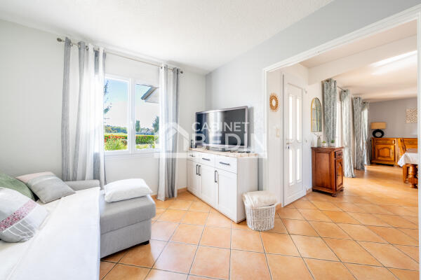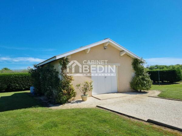 Venez découvrir cette ravissante maison de plain-pied, nichée dans un coin de verdure, au cœur de l'entre-deux-mers. Elle vous offre un spacieux salon doté d’une cheminée, une cuisine équipée, 4 chambres, une buanderie ainsi qu’une salle d'eau. L’extérieur a tous les atouts pour vous charmer : un garage d’environ 35m² et une vaste terrasse couverte, parfaite pour se détendre tranquillement au bord de la piscine. Un jardin entièrement clos d'environ 3700m2 en partie constructible complète l’ensemble. Vous serez séduits par cette maison qui bénéficie d'un cadre paisible, à seulement vingt de minutes de Créon, idéal pour allier confort quotidien et environnement paisible.
