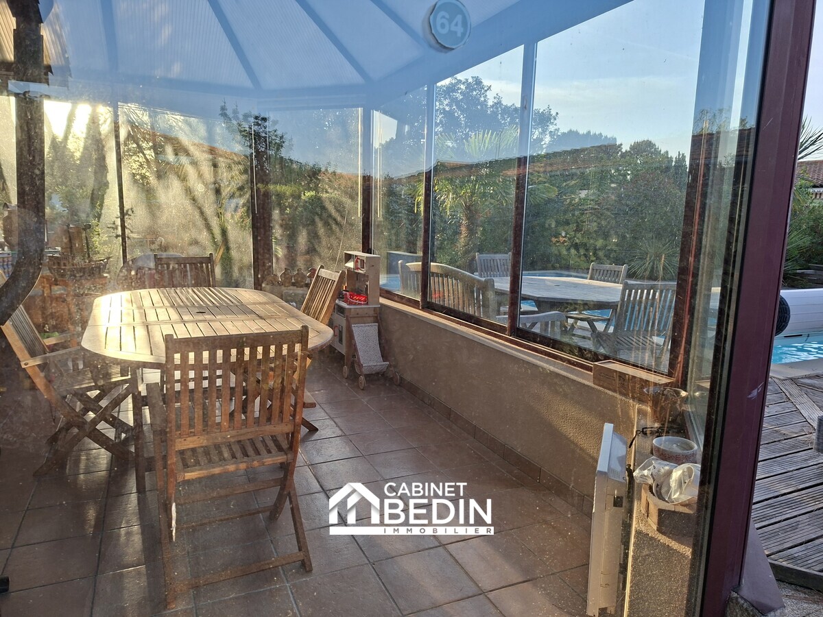 Cette maison landaise aux prestations complètes vous offre un cadre de vie aussi agréable que fonctionnel. Son espace de vie spacieux et lumineux, rythmé par une cheminée avec insert, invite à la convivialité, tandis que la véranda crée une transition douce entre intérieur et extérieur.