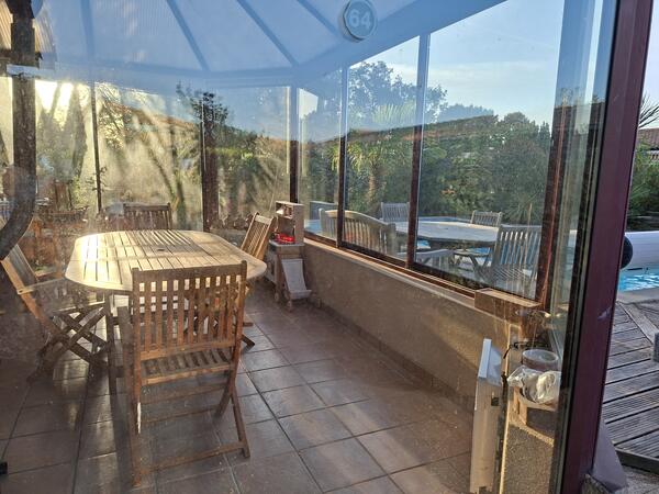 Côté extérieur, place à la détente et aux loisirs : piscine, jardin agréable, double garage, abri bois et extension vitrée fermée viennent compléter l’ensemble et offrent de multiples possibilités d’aménagement.