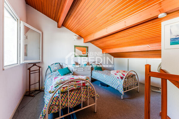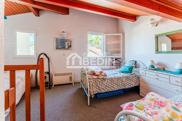 En exclusivité au Cabinet Bedin, Cette annonce immobilière correspond à des personnes en recherche maison Biscarrosse Plage. Ce bien immobilier propose une surface de 62 m². Cette maison construite sur un terrain de 110 m² dispose de 1 chambre. Dans le détail, cette Maison comprend les pièces ou éléments suivants: chambre de 9.1 m² , cuisine americaine de 4.2 m² , couloir de 2.0 m² , entree de 2.5 m² , jardin de 110.0 m² , mezanine de 18.8 m² , douche de 3.5 m² , salle a manger sejour de 21.0 m² , toilettes de 1.1 m²