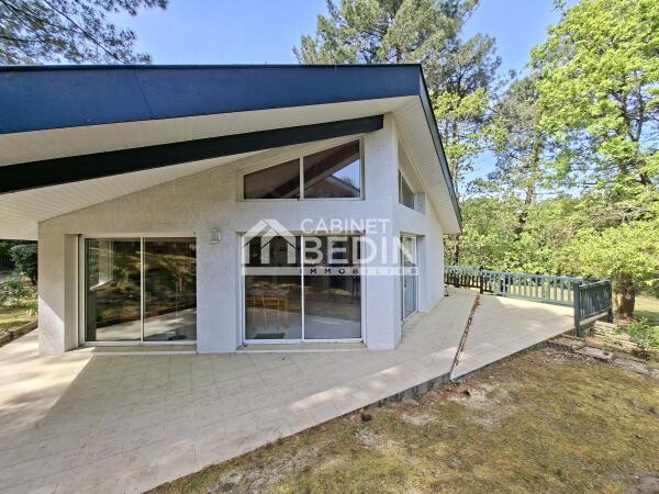 Dans le domaine du Golf, environnement paisible et accès à pied au lac, au club house et au début du parcours de golf pour cette belle maison d'architecte. Elle offre une superbe pièce de vie lumineuse triple exposition avec plafond cathédrale de plus de 50m² comprenant un séjour chaleureux avec cheminée , une cuisine US équipée avec bar, et de larges baies vitrées ouvrant sur l'extérieur.Côté nuit, la maison dispose de quatre véritables chambres dont deux avec salle d'eau et salle de bains privatives.Une troisième salle d'eau complète l’espace nuit. Implantée sur un magnifique terrain arboré et paysagé de plus de 1400m²,la propriété bénéficie également d'un garage et de plusieurs espaces de stationnement. Une grande terrasse orientée sud et est vous permettra de profiter pleinement des beaux jours dans un cadre privilégié. A visiter sans tarder.