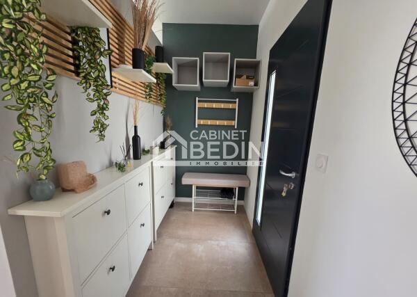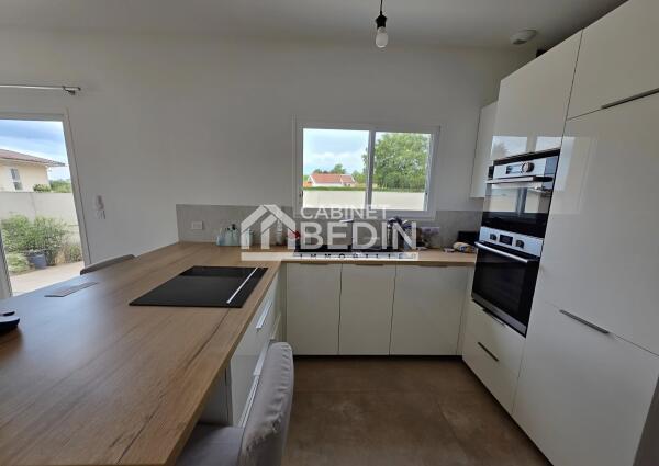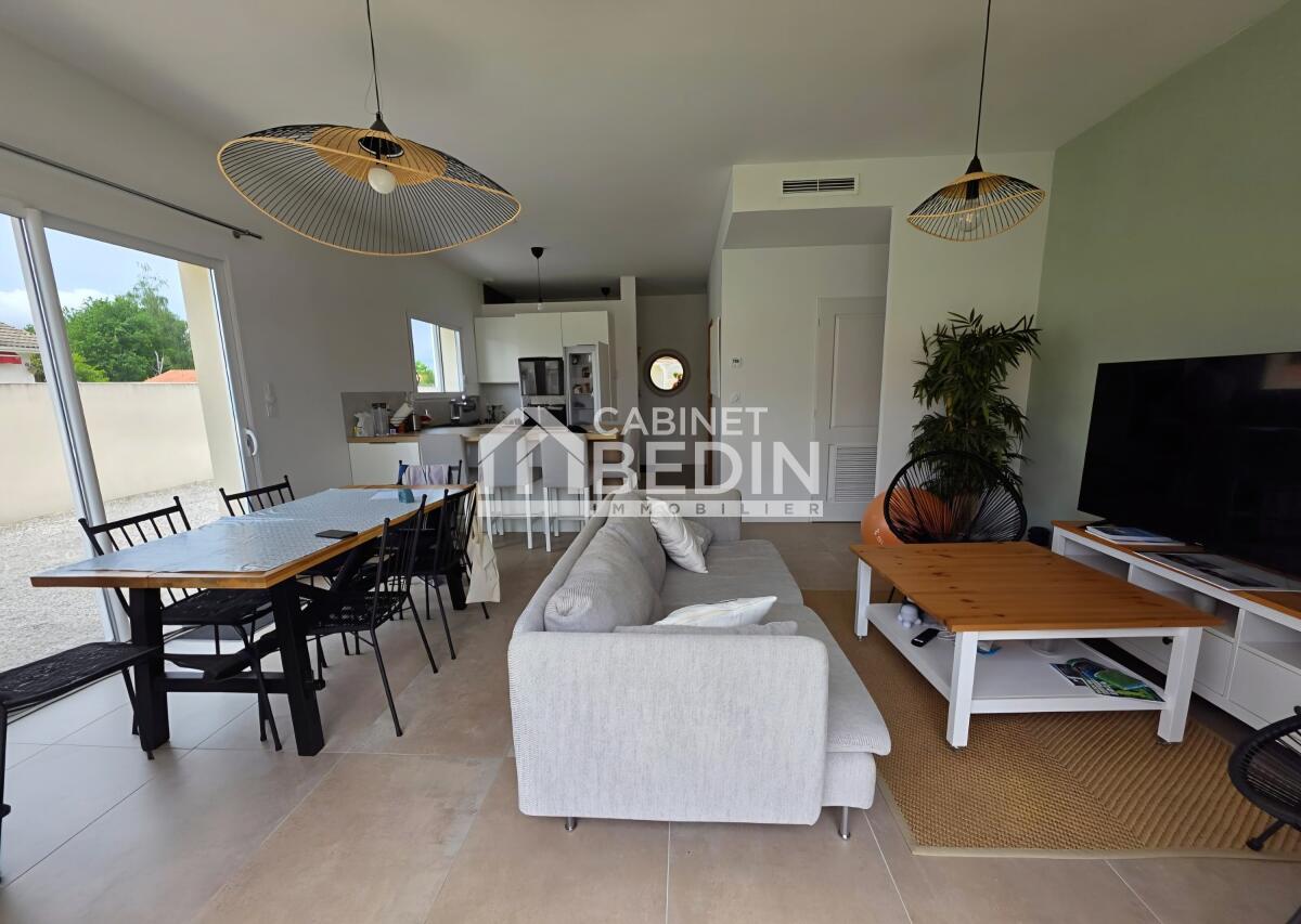Découvrez cette superbe maison quasi neuve offrant 3 chambres confortables et un bureau idéal pour le télétravail. Son vaste espace de vie ouvert de plus de 40 m² réunit salon, cuisine et séjour dans une ambiance chaleureuse et lumineuse. Vous profiterez d’une salle d’eau moderne et d’une salle de bain familiale. Le garage indépendant de plus de 20 m² est carrelé, isolé, avec eau et électricité. Le tout sur un terrain de 500 m² avec une piscine au sel, parfaite pour vos étés ensoleillés.